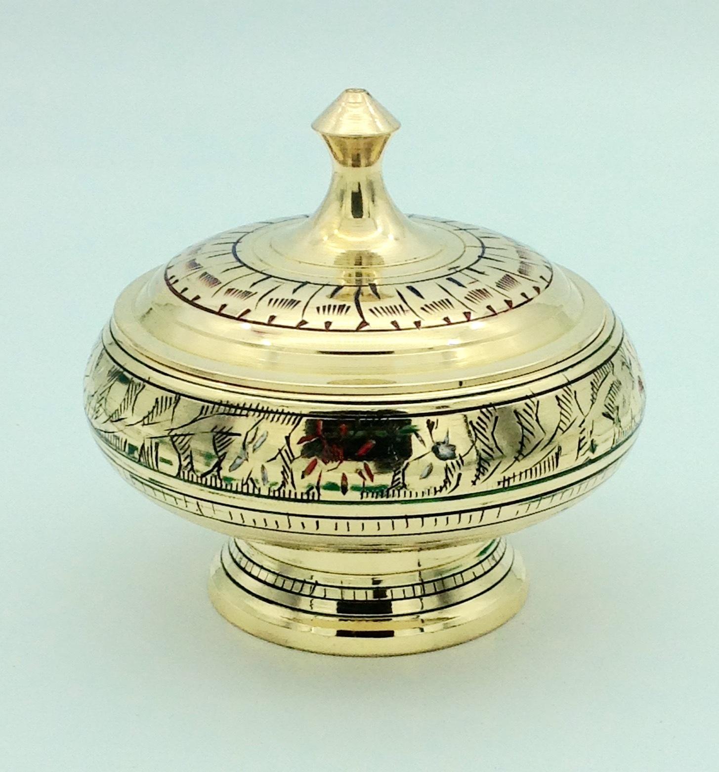 This Large Engraved Brass Incense Censer is ideal for burning Incense Cones and Charcoals and comes with an engraved lid.
