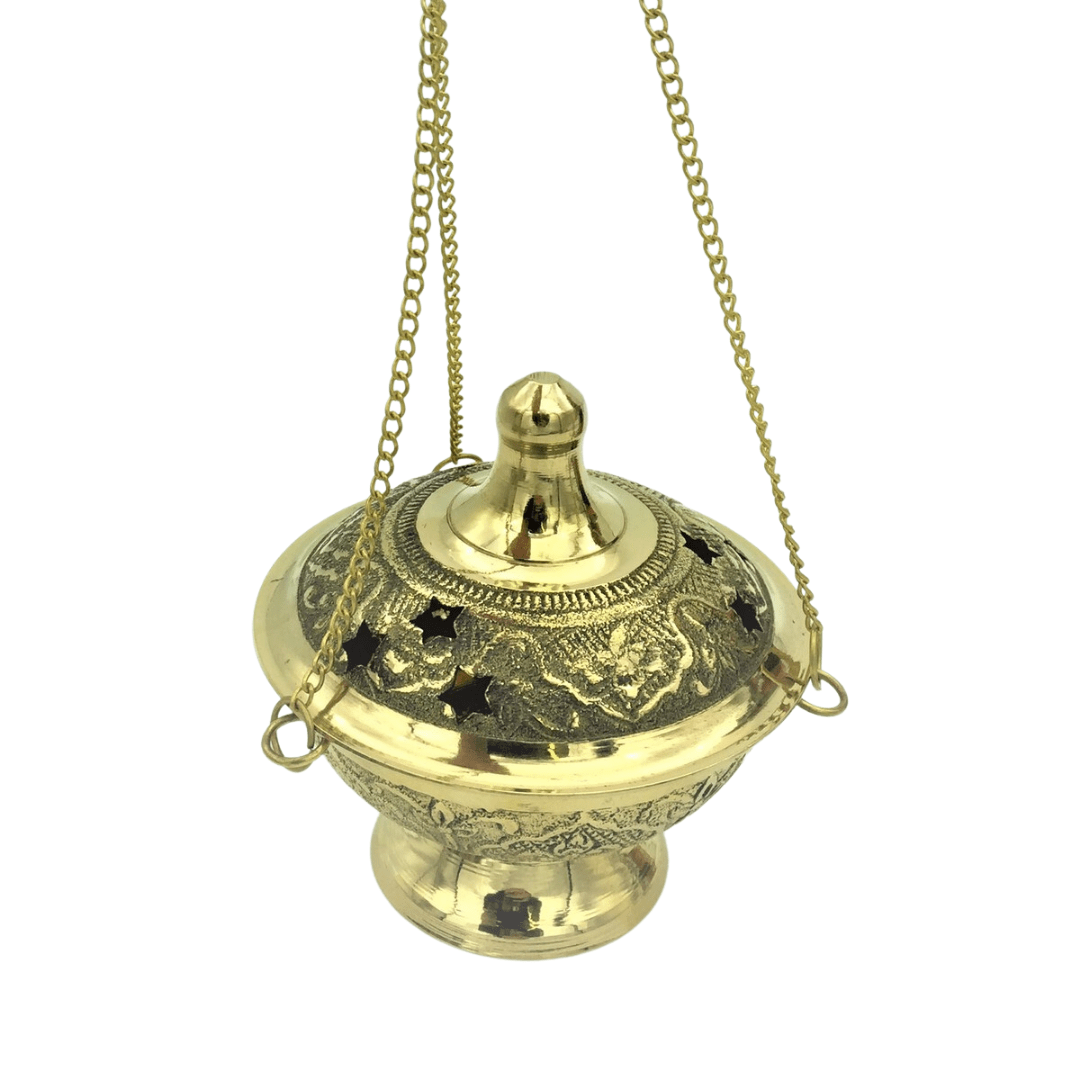 This hanging censer is ideal for charcoals, incense coils or cones.